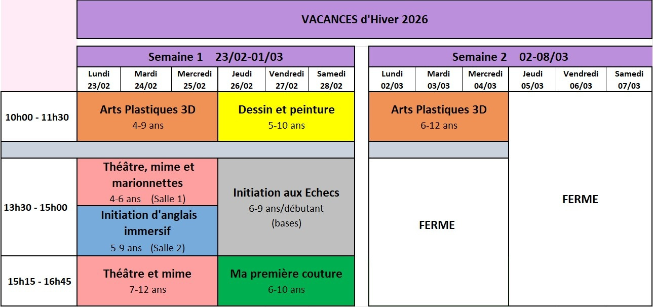 Stages vacances hiver 2026