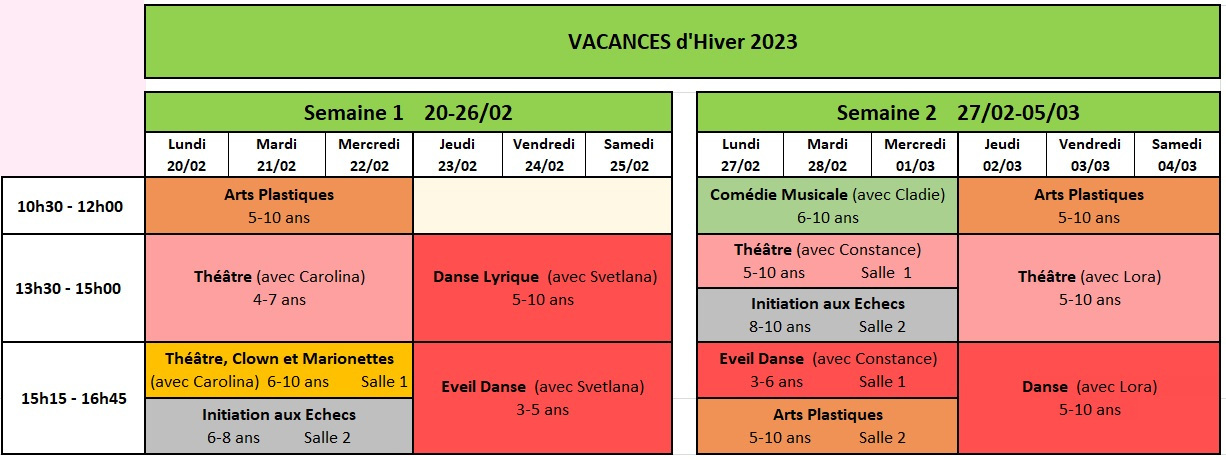 Les enfants peuvent enrichir leurs vacances par des stages thématiques de trois jours (1h30/jour)